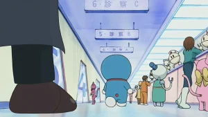 Trong một cảnh phim từ phiên bản Mizuta của bộ anime “Doraemon bị ốm”, nhân vật đó là Taeko từ bộ phim hoạt hình năm 1995 “Sự ra đời của Doraemon”, và cô ấy bước vào Phòng khám số 4.